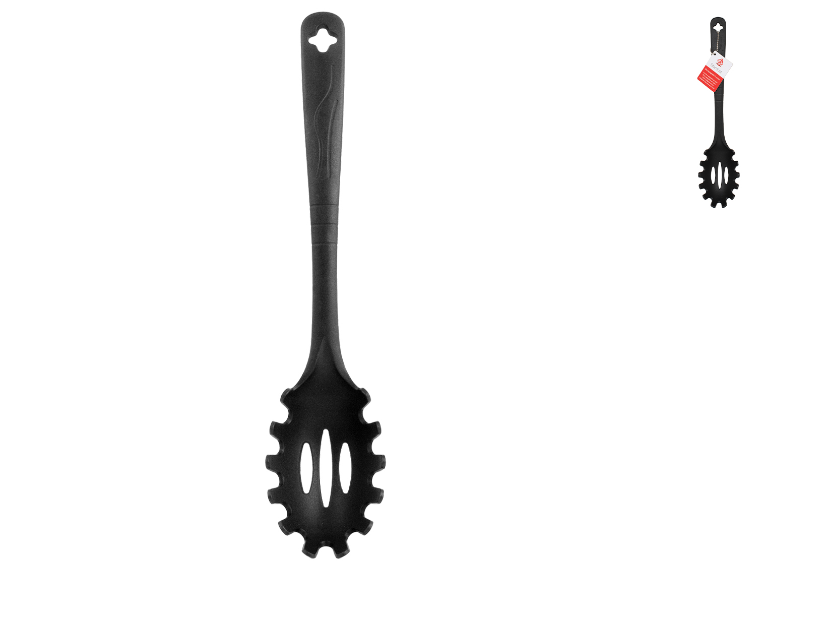 Il Servispaghetti Stardust in nylon colore nero da 31 cm è un utensile ideale per servire e porzionare la pasta con facilità. Realizzato in nylon resistente, è perfetto per l'uso su pentole e padelle antiaderenti, proteggendole dai graffi. Offre una presa comoda e sicura e risulta idoneo per il lavaggio in lavastoviglie, rendendo la pulizia rapida e senza sforzo.