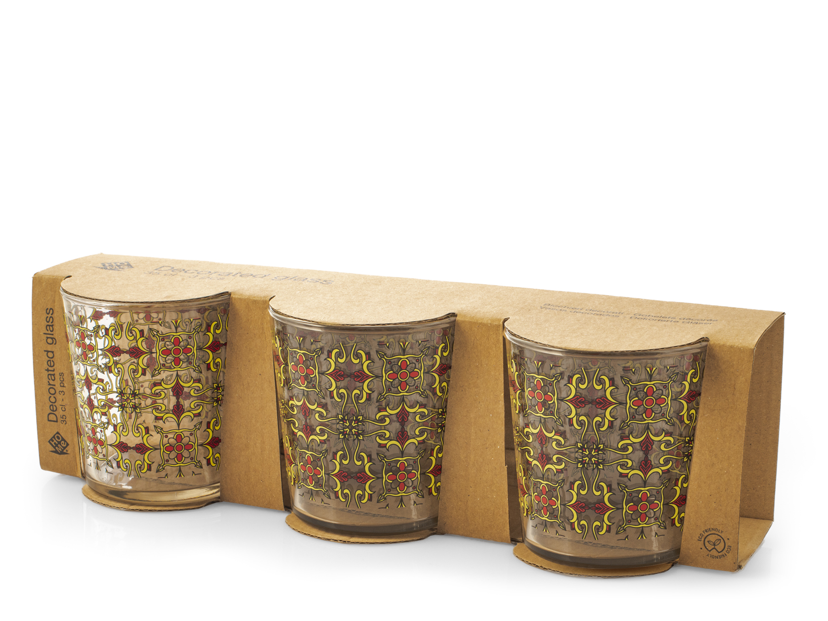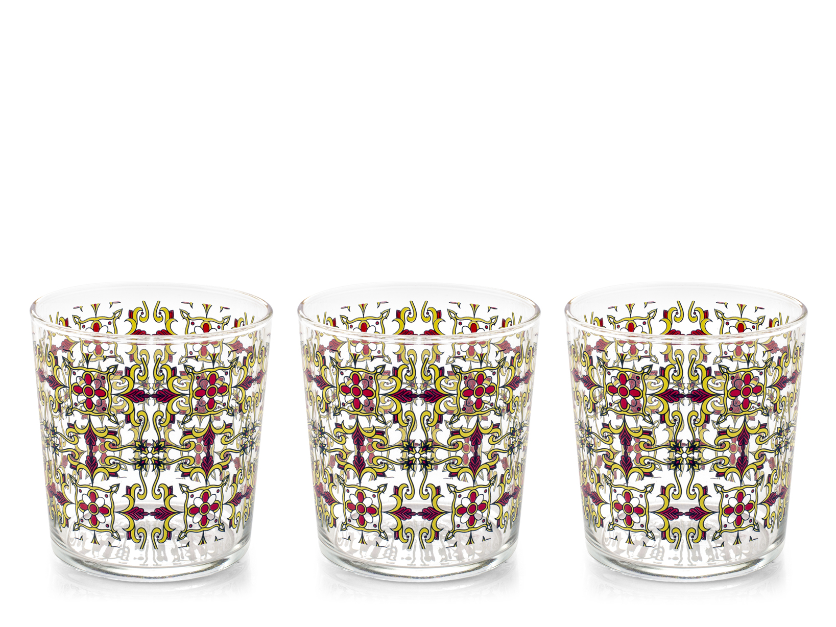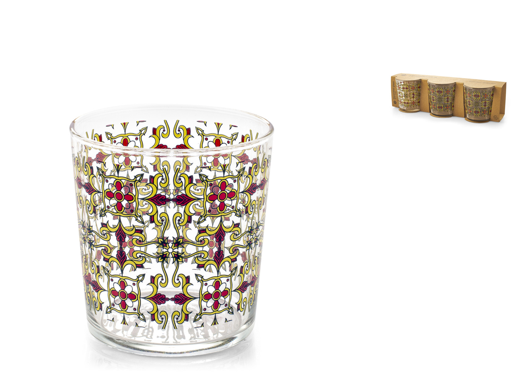 Il set da 3 bicchieri Zafira in vetro decorato da 35 cl è la scelta perfetta per chi cerca un mix di eleganza e originalità. I bicchieri sono impreziositi da un decoro geometrico colorato, che dona un tocco di vivacità e modernità alla tua tavola. Realizzati in vetro di alta qualità, sono ideali per servire acqua, succhi o altre bevande. Inoltre, sono idonei al lavaggio in lavastoviglie, garantendo praticità senza rinunciare allo stile.