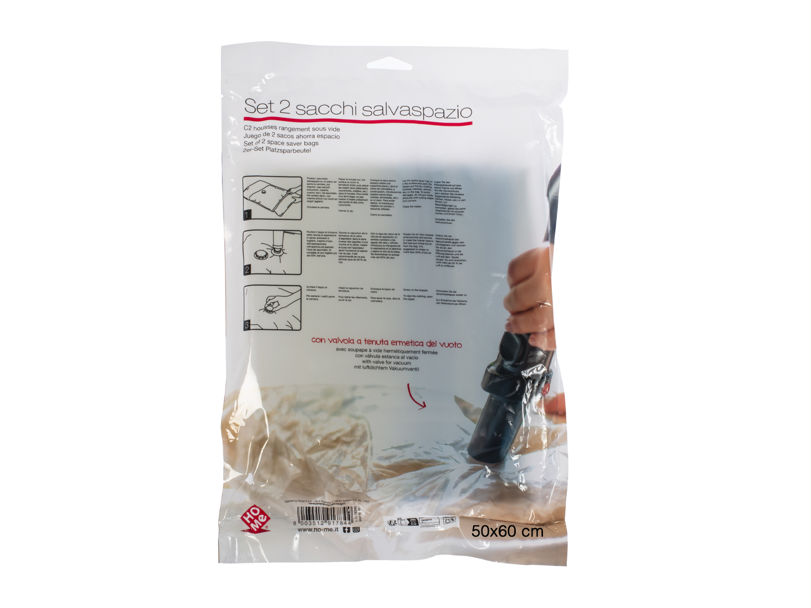 Set 2 Sacchetti Sottovuoto Per Guardaroba 50x60 cm